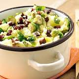 Vegetarische spruitenstamppot met appel en kaas, een echte herfst-stampot.